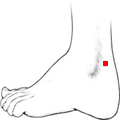 Come trovare il punto: il punto si trova nel canale fra il tendine d’Achille ed il malleolo esterno, all’altezza della cresta del malleolo.