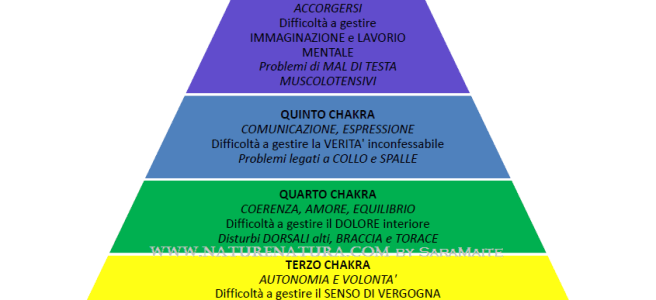 Ho chiesto aiuto all’energetica indiana per costruire questo schema di oggi e ad alcuni autori sempre di grande aiuto nell’analisi della psicosomatica applicata: Anodea Judith, Alexander Lowen, Lise Bourbeau, Claudia Rainville… il resto ce l’ha messo l’esperienza lavorativa personale che ormai inizia ad essere parecchia e imprescindibile.